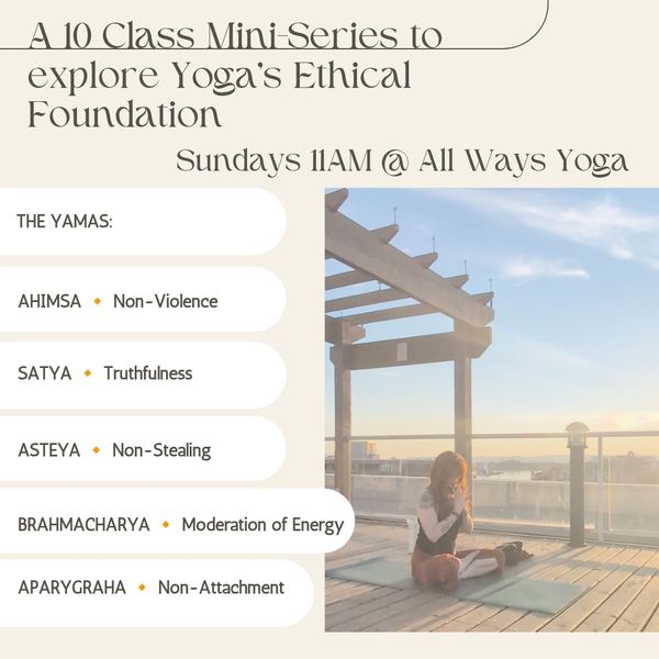 During these classes, I'll be offering a special 10-week journey through the Yamas & Niyamas (Yogic philosophy) to deepen your practice on and off the mat.
